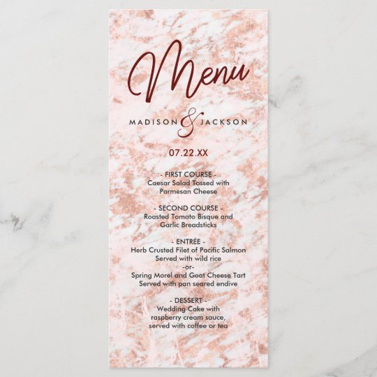 Burgundy Rose Gold Marbled Modern Wedding Menu Zazzle Com