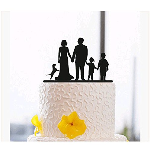 Couple Wedding Cake Toppers Kids And Dog Family Silhouette Wedding