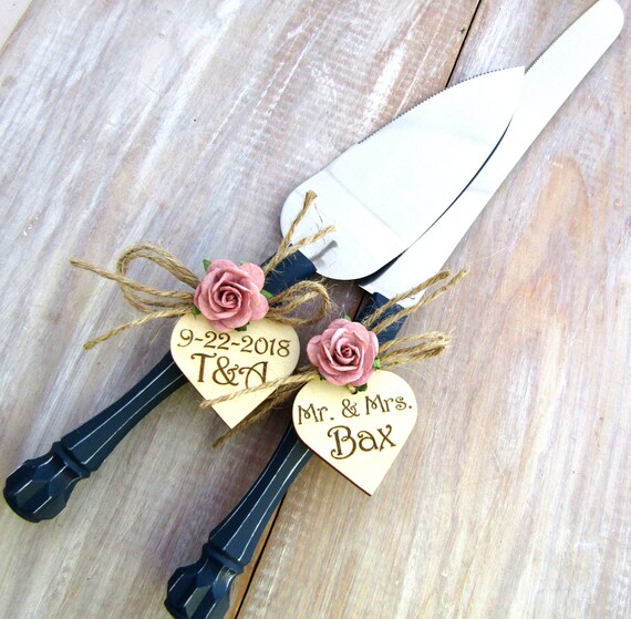 Rustic Chic Wedding Cake Server And Knife Set Navy Handle Etsy