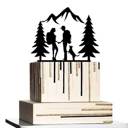 Acrylic Cake Topper Hiking Couple Wedding Cake Topper With Dog