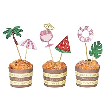 Hokpa Hawaii Luau Cupcake Toppers Palm Leaves Cake Topper Fruits