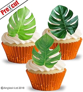 Jevenis 7 Pcs Glittery Tropical Leaves Cake Topper Tropical