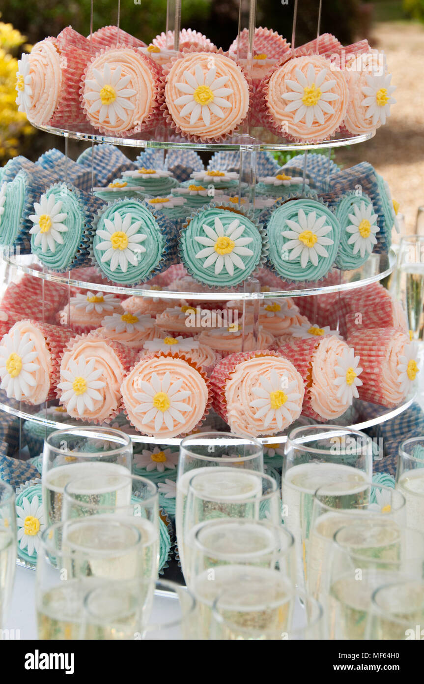 Pastel Coloured Pink And Blue Based Cupcakes With Daisy