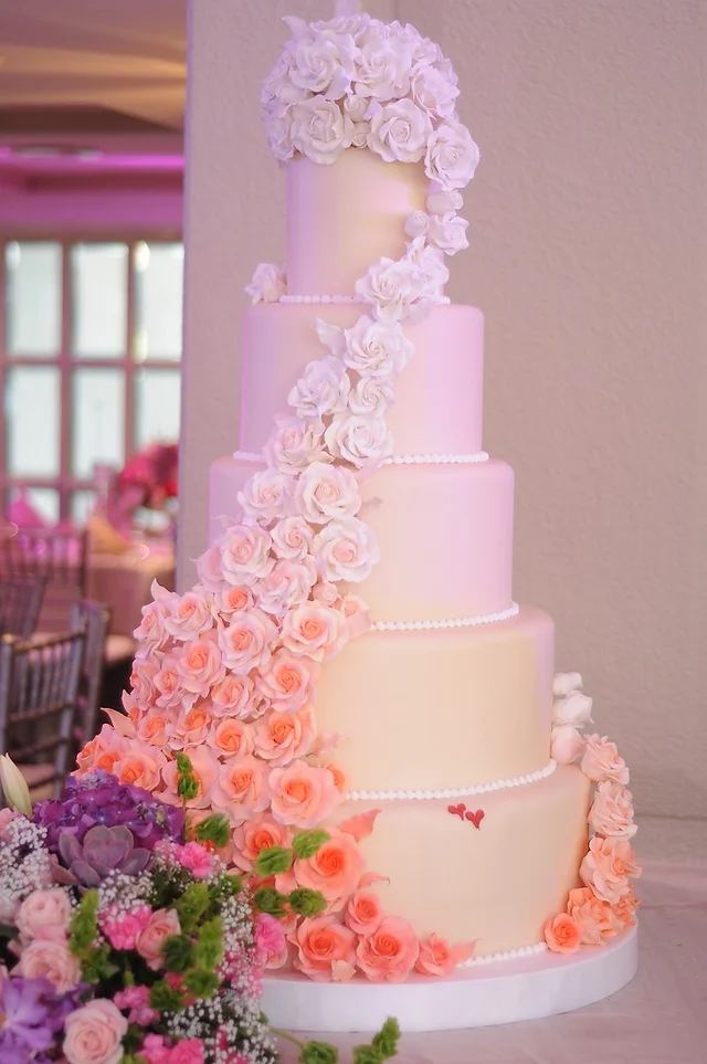 Wedding Cake With Handmade Blush Pink Roses Lavender Greenery