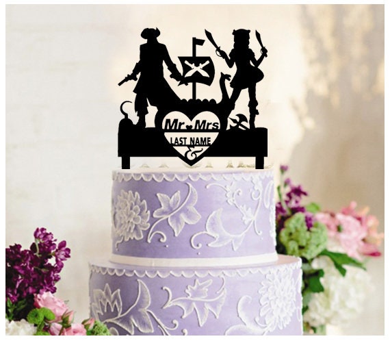 Pirate Wedding Custom Name Cake Topper Mr And Mrs Etsy