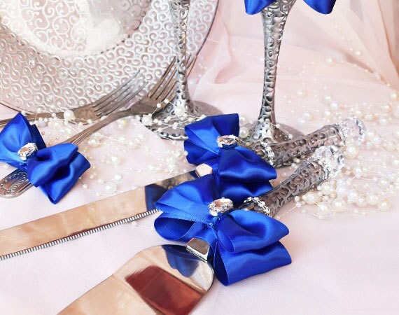 Royal Blue Cake Serving Set Wedding Cake And Knife Serving Etsy