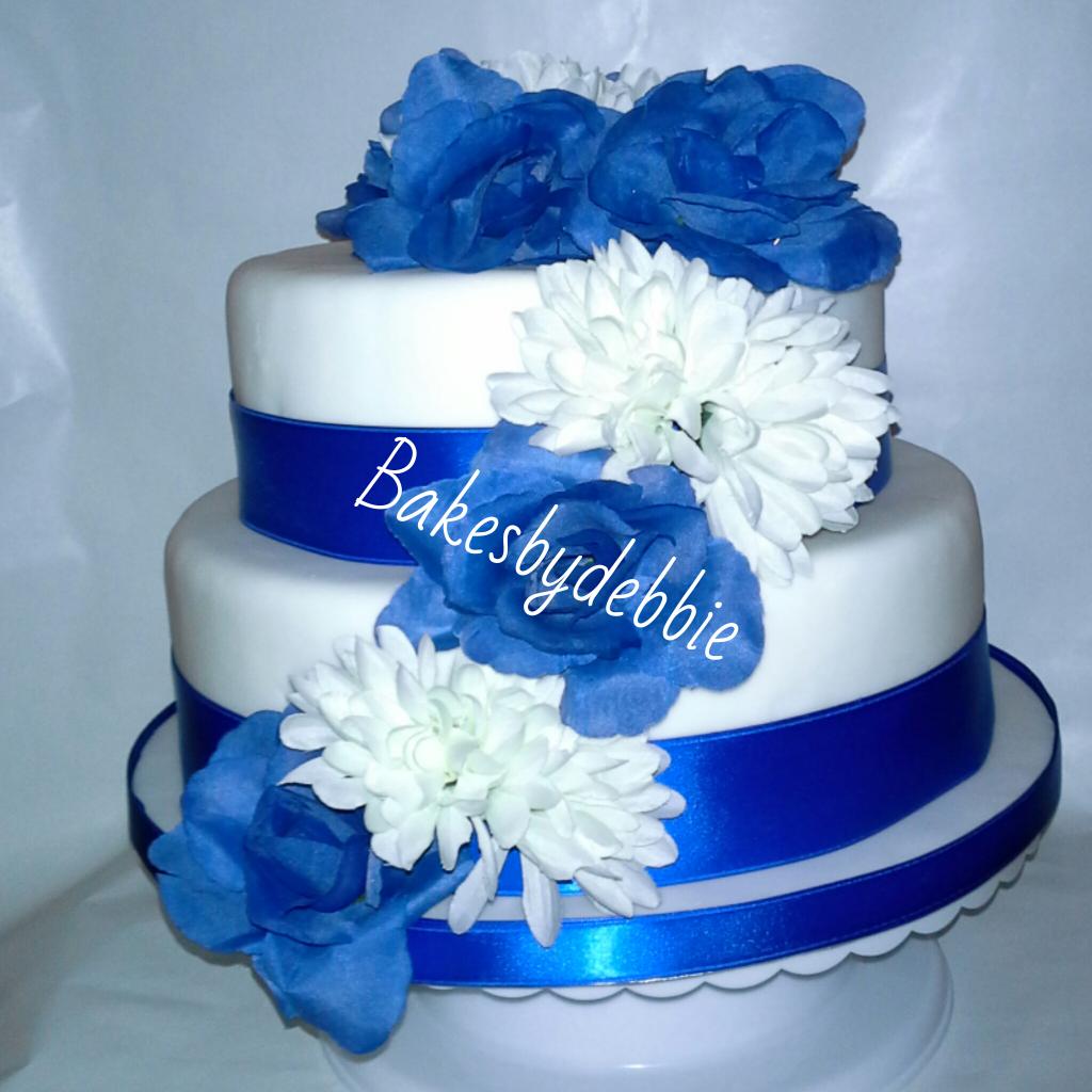 Wedding Cake Royal Blue And White Beautiful Two Tiered White And