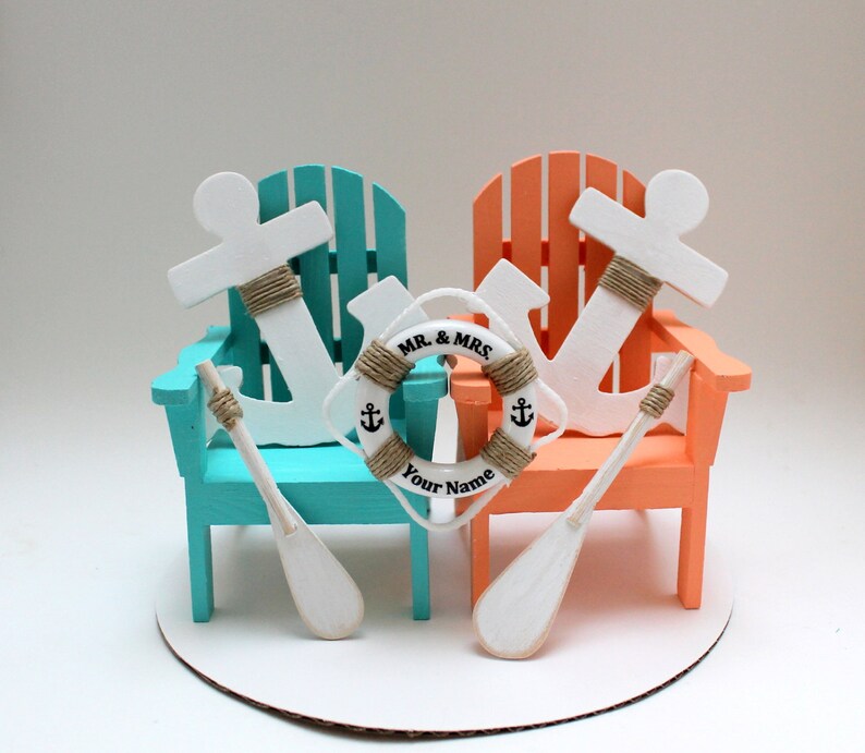 Nautical Cake Toppers Weddingrustic Beach Chairs Cake Etsy