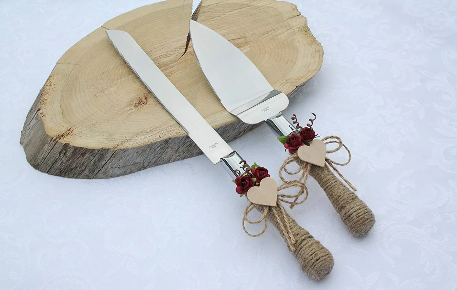 Wedding Cake Knife Set Burlap Knife Set Cake Cutting Set