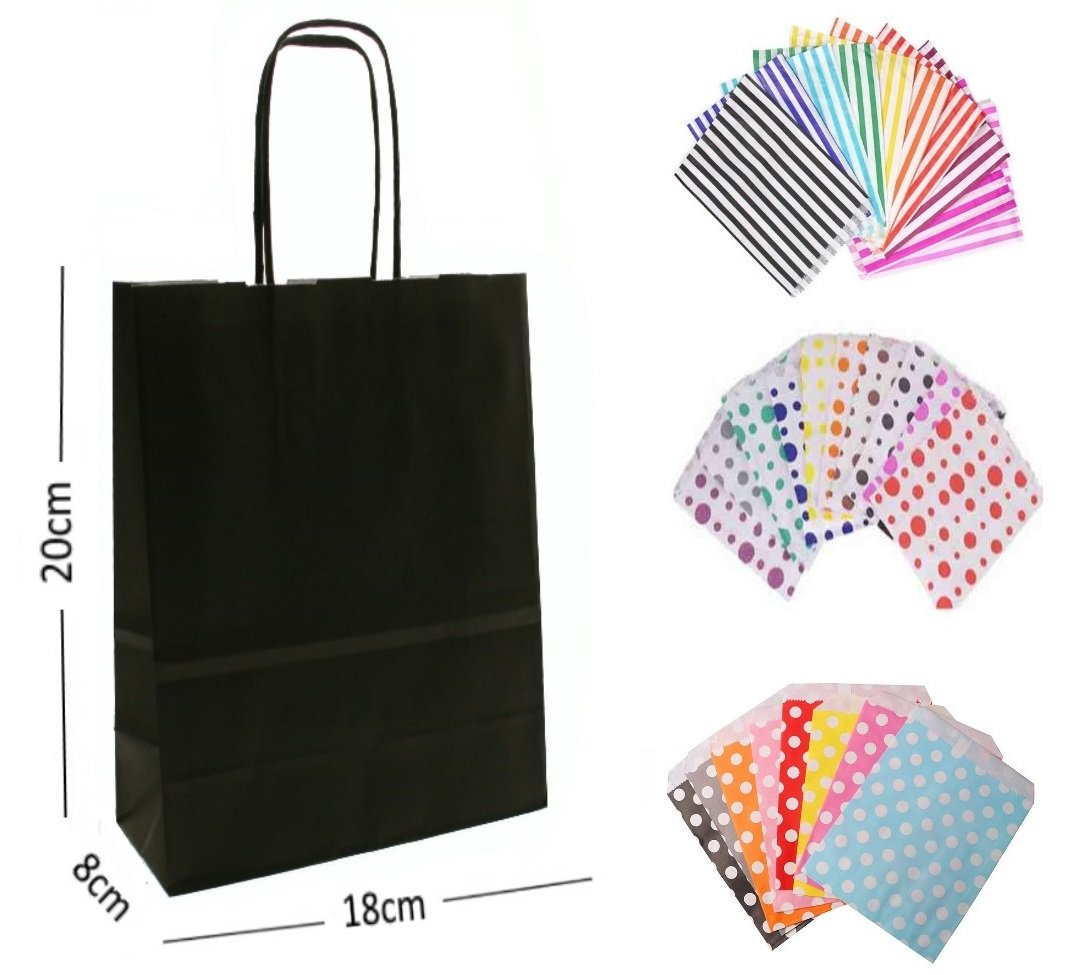 X 10 Black Gift Bags With Matching Black Cake Bags Christmas