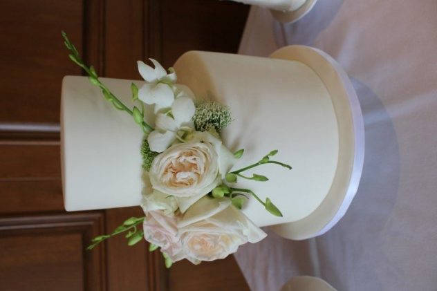 Romantic Wedding Cake Ivory 3 Tier With Light Pink Fresh Flowers