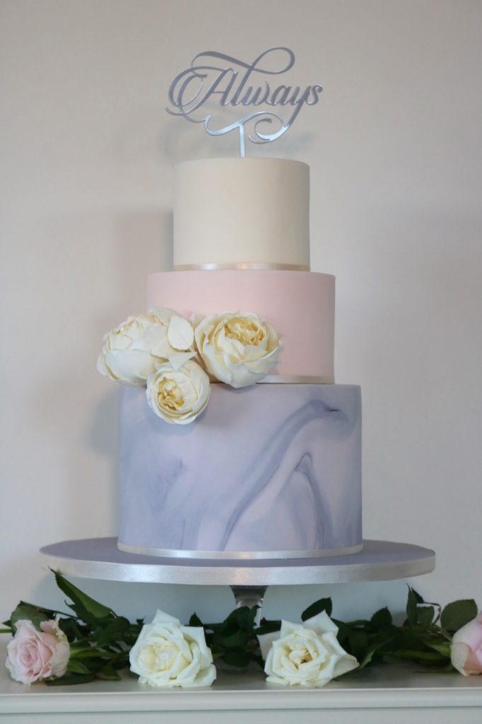 Winter Themed Silver And Grey Wedding Cake With Marble Effect