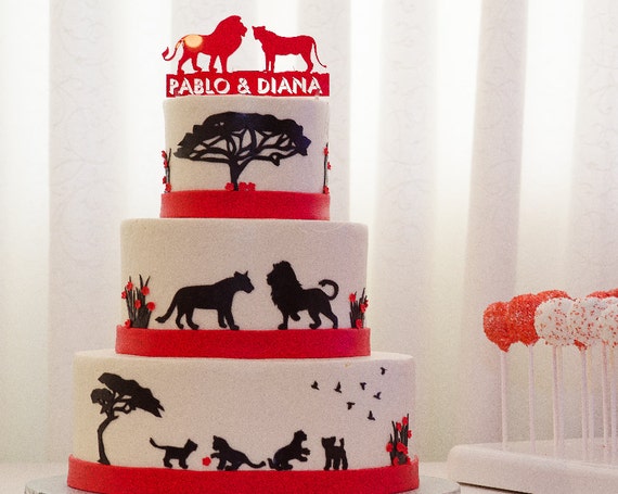 Lion And Lioness Wedding Cake Topper With Your Name Or Phrase Etsy