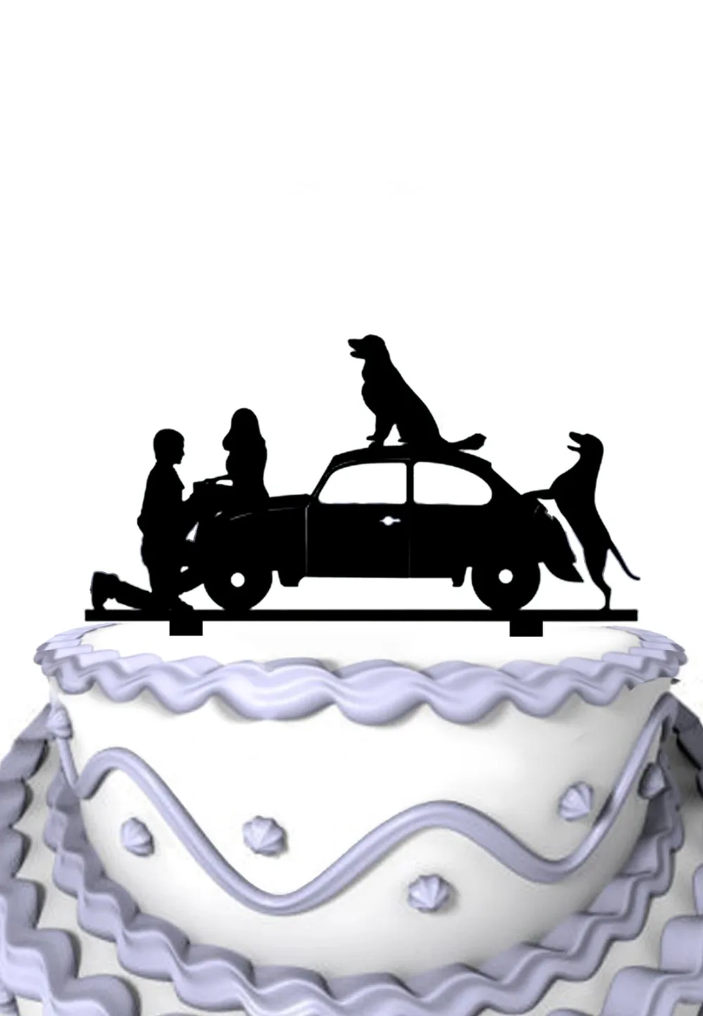 Groom Propose To Bride With Two Pet Dog Wedding Cake Topper Luxury