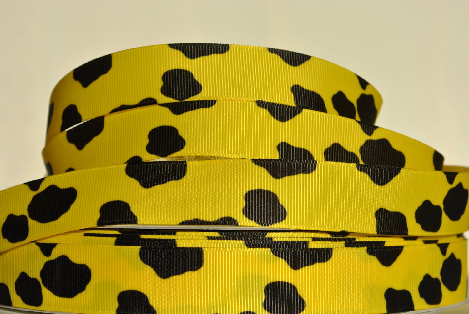 5 Yards Yellow Electric Cow Print 7 8 Grosgrain Etsy