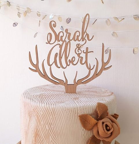 Personalized deer antler cake topper. Collection by erika parker. Antler wedding cake topper wedding cake options are just about unlimited and the wedding cake has arrive to symbolize the wedding more than any extra visual elementthere are a range of options but dont let them limit or destroy you.