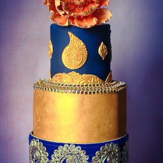 Gold And Navy Blue Cake Wedding Galery
