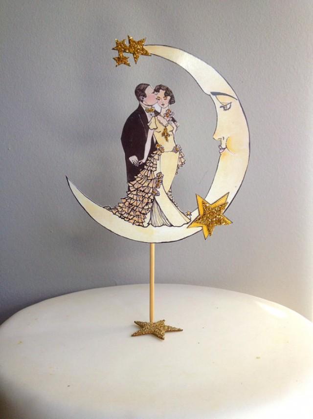 Glitter Wedding Cake Topper Glitter 14 Karat Gold Art Deco