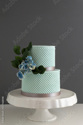 The Sensational Cakes White Roses 2 Tier Blue Wedding Cake