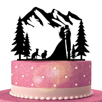 Outdoor Wedding Cake Topper Mountain With Dog And Cat Tree Cake