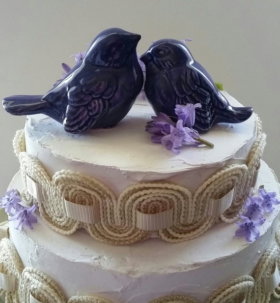 Purple Wedding Love Birds Wedding Cake Topper Ceramic Birds Etsy