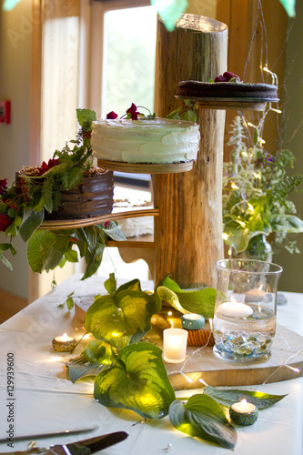 Rustic Wedding Cake Display On Wooden Stand Buy This Stock Photo