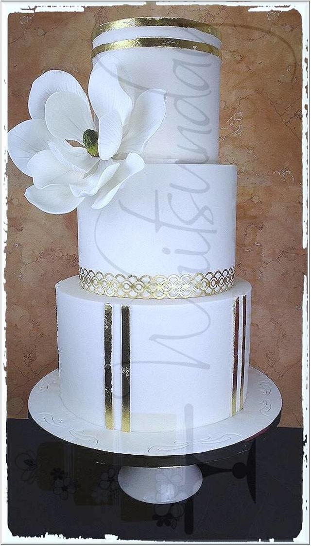 Edible Goldleaf And Magnolia Wedding Cake Cake By Cakesdecor