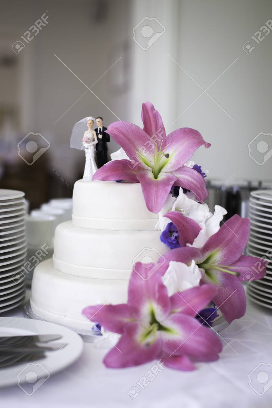 Wedding Cake With Pink Flowers Stock Photo Picture And Royalty